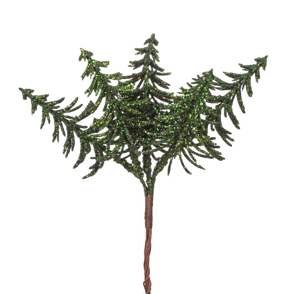 Dekorácia Zápich stromčeky, gliter zelené 17cm
