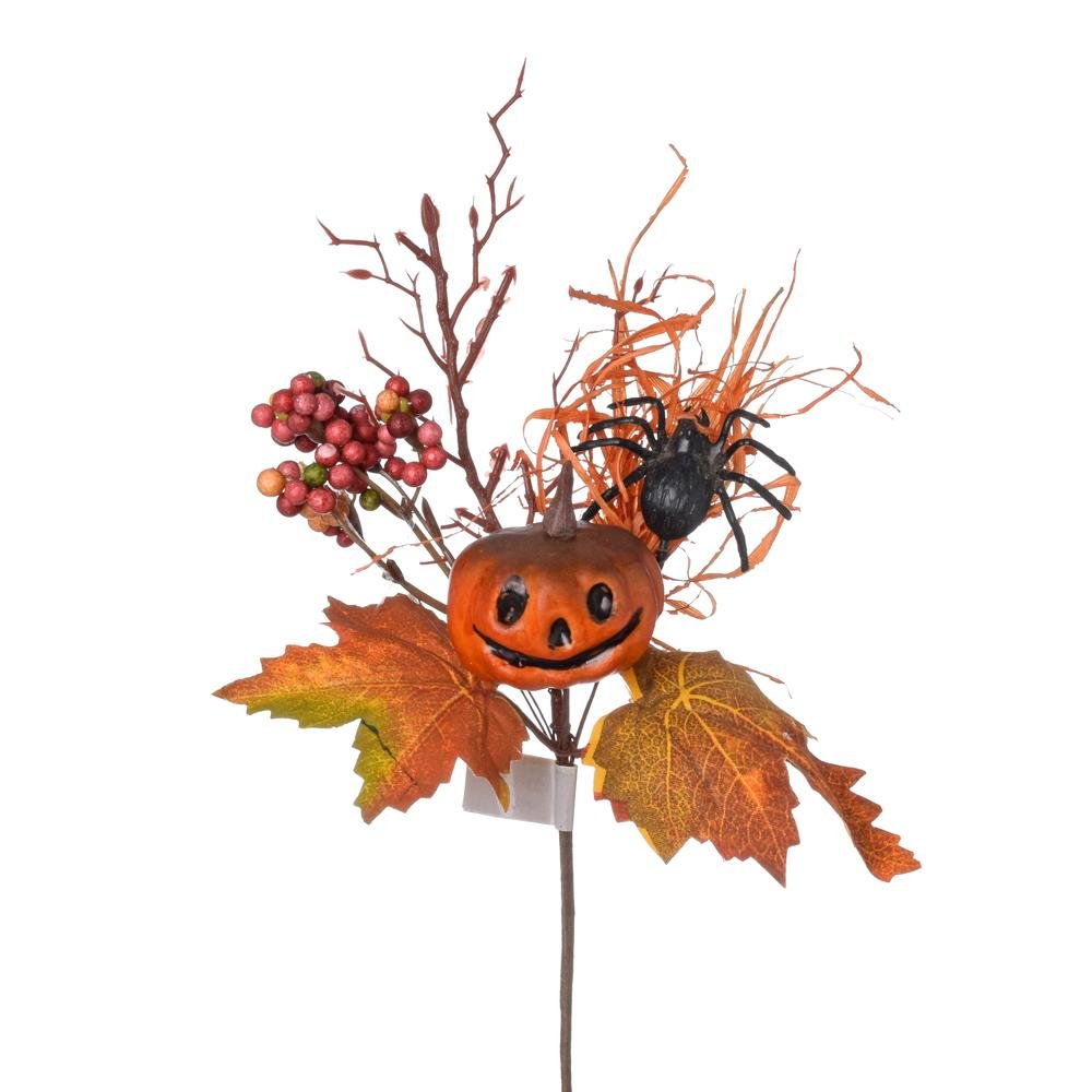 Dekorácia Konárik tekvica, pavúk, bobuľky, listy, or/čie/čer 30cm