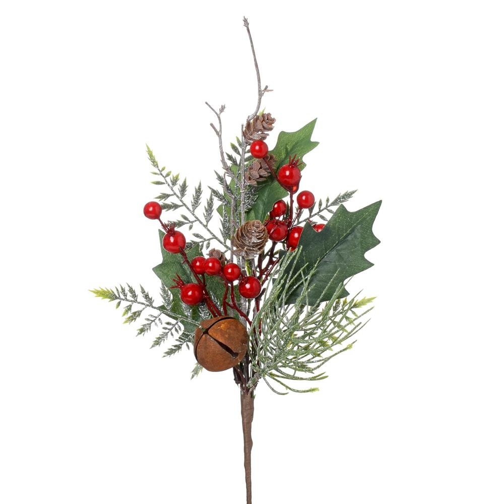 Dekorácia Konárik tuja, rolničky, guličky, čečina, glit zel/čer/hne 37cm