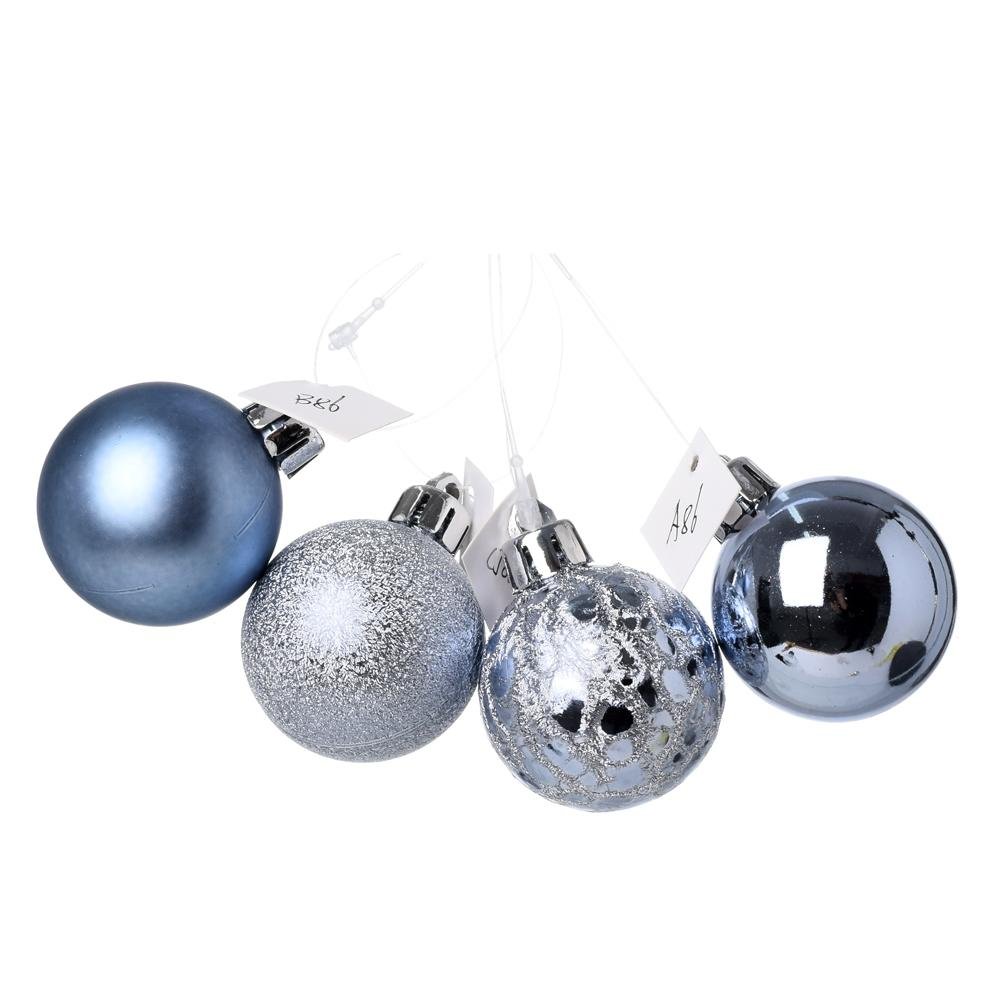 Dekorácia Gule plast. modro-sivé mat/lesk/per. s/12 2cm