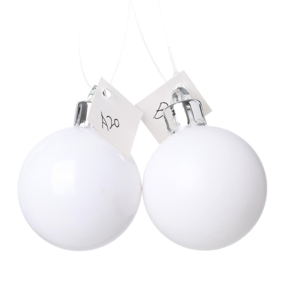 Dekorácia Gule plast. biela lesk/mat/piesk/mraz s/12 2cm
