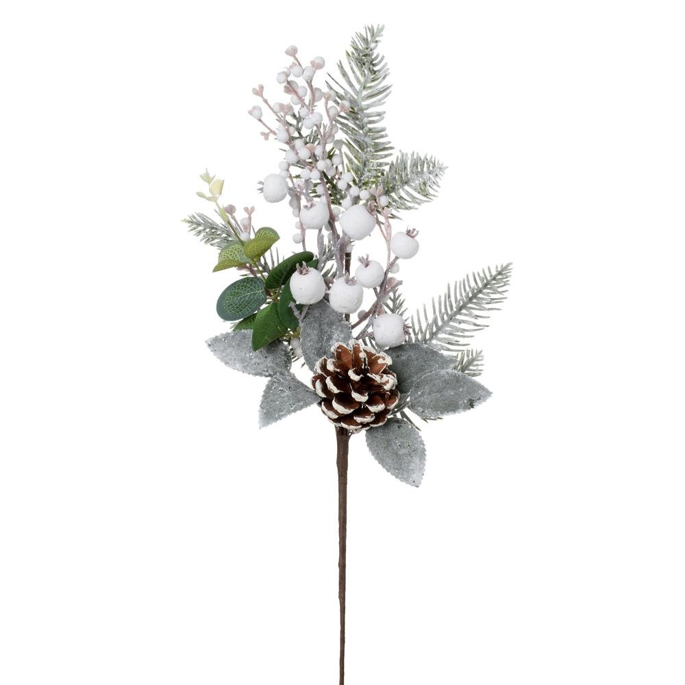 Dekorácia Zápich čečinka, eucalypt, šiška, bie. šípky, bobulky 48cm