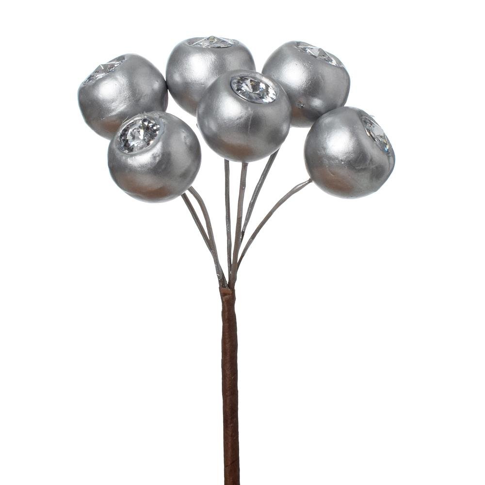 Dekorácia Zápich bobule s kamienkom strieborné x6 15cm
