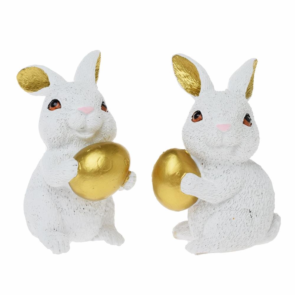 Dekorácia Zajac s vajíčkom poly 7x5x10,5cm bielozlatá mix