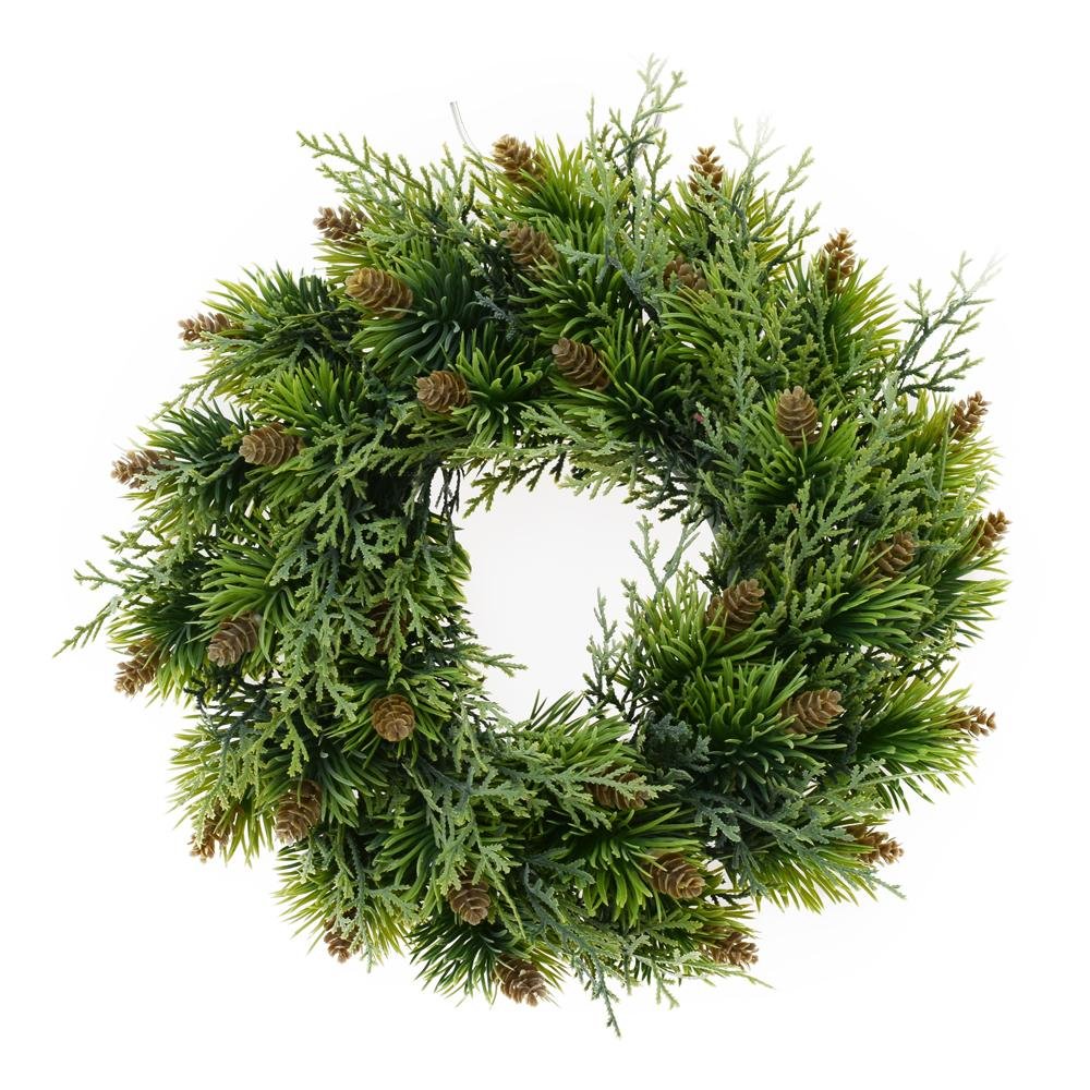 Dekorácia Veniec tuja, šišky, zelený 36cm