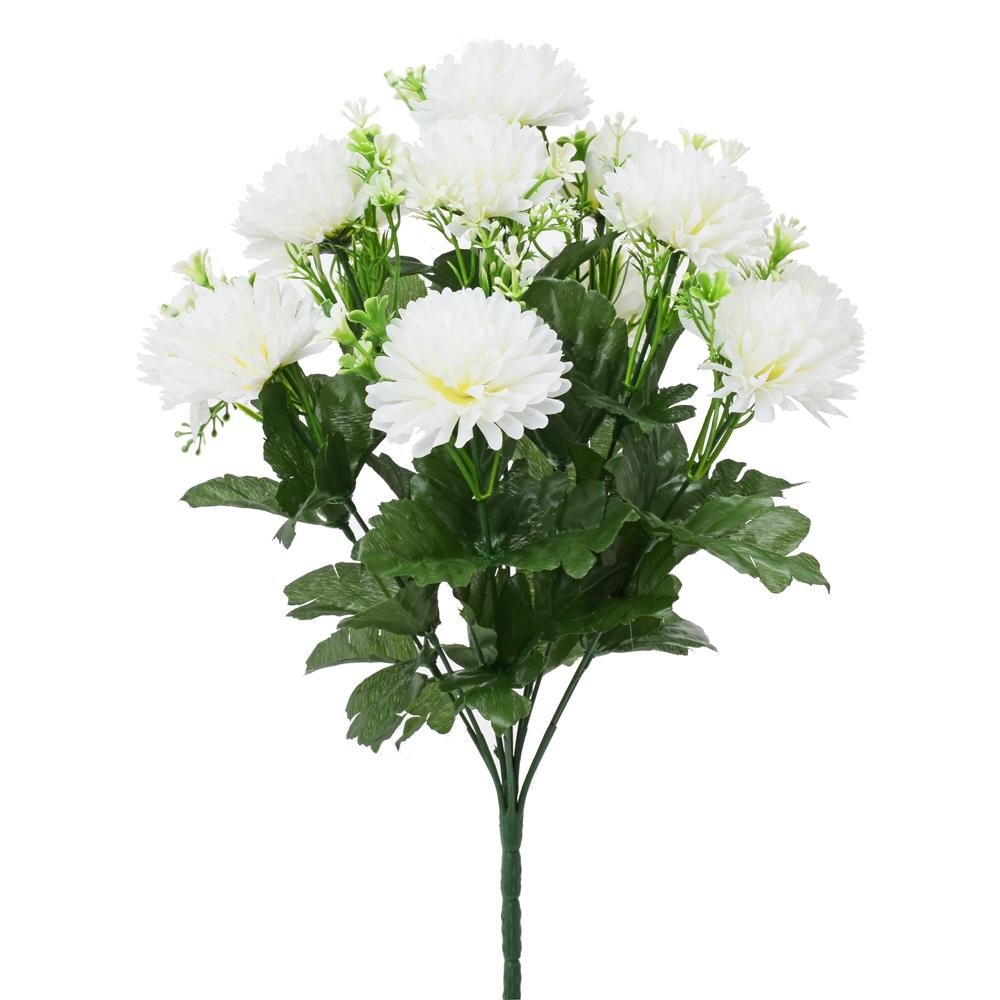 Dekorácia Kytica chryzantéma biela, zeleň x12 40cm