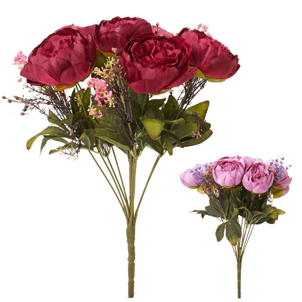 Dekorácia Kytica pivonka fialová/bordová zeleň mix/2f 38cm