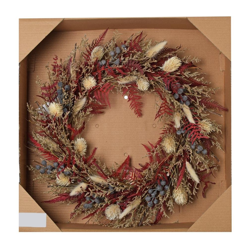 Dekorácia Veniec suš.,bodl.,papraď,limon.,lagur., mo/če/kre/hne 46cm