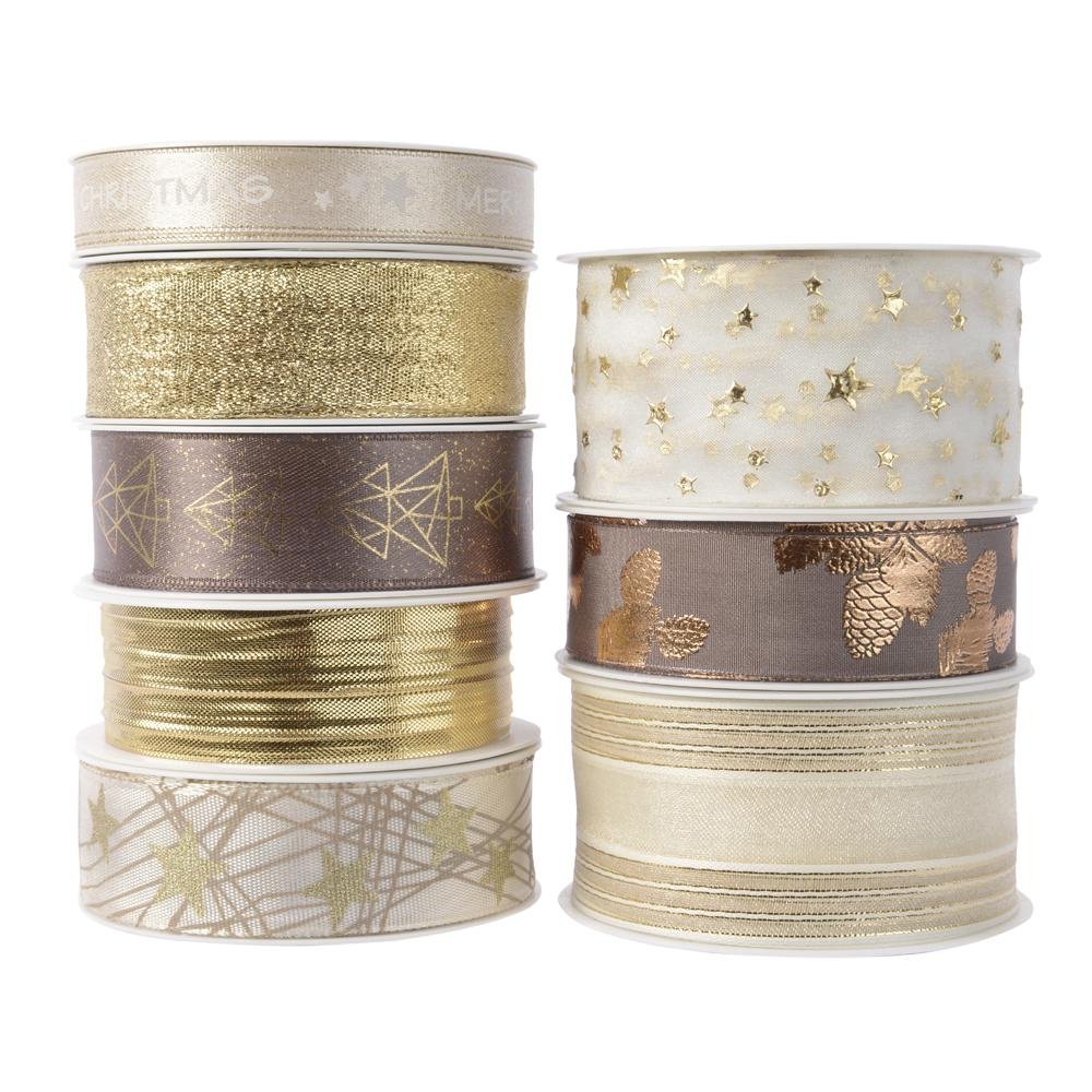 Dekorácia Stuha polyester mix zlatá far 8ass1,5cmx4m