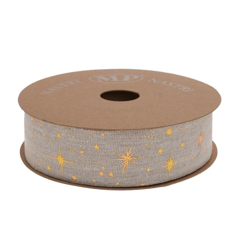 Dekorácia Stuha vian juta hviezdy zlatá 4cm/20m 4948g