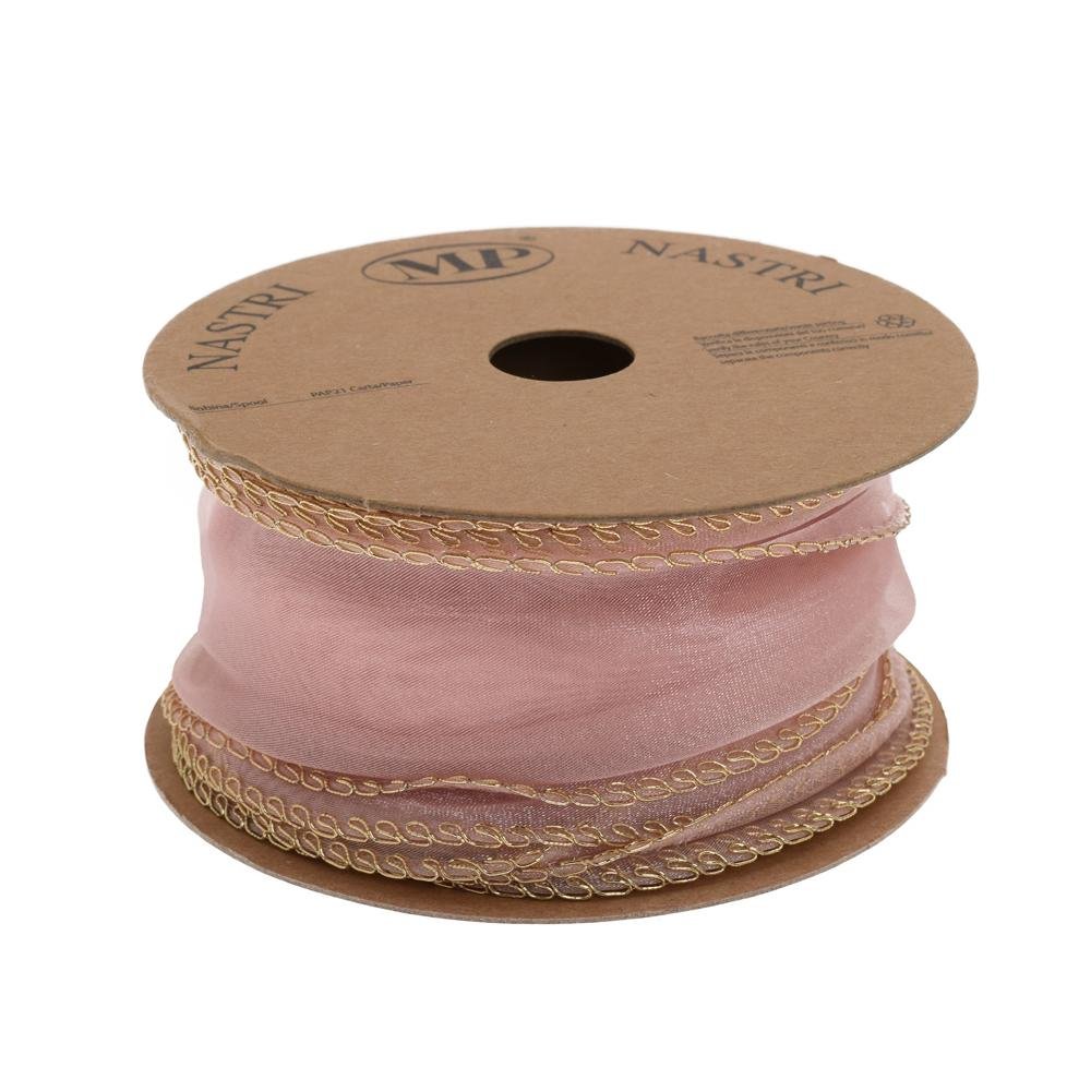 Dekorácia Stuha tyl ružová/zlatý lem 6,3cm/10m 4979xg 57
