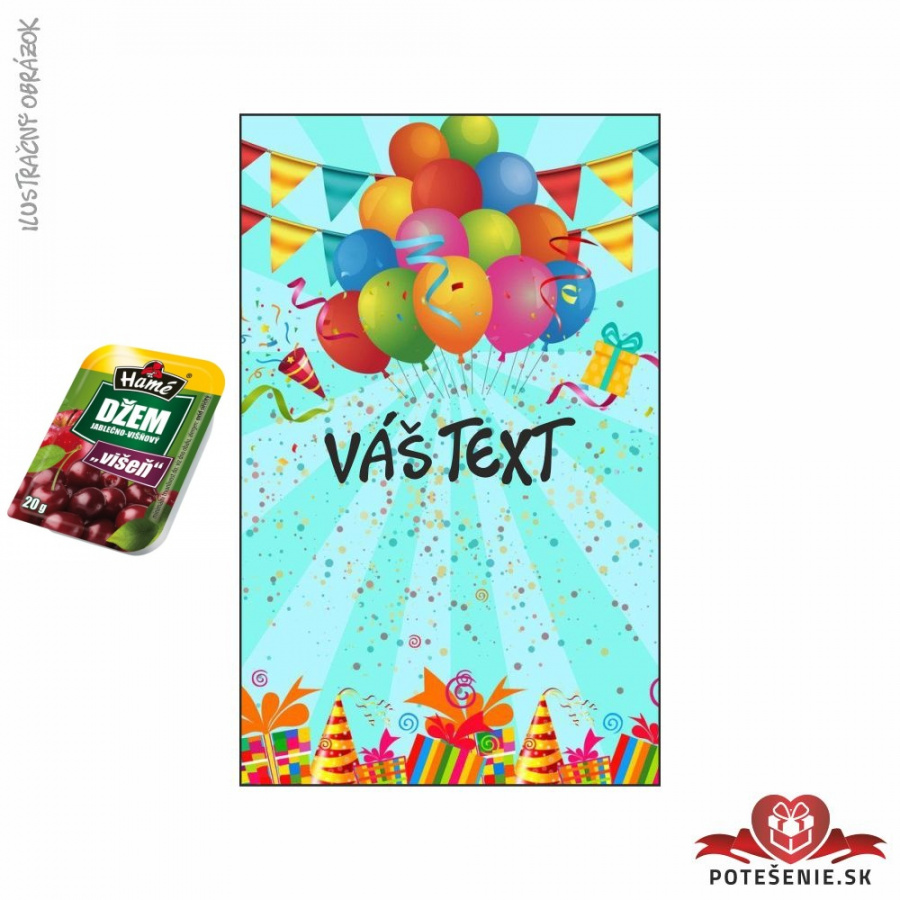 Personifikovaný narodeninový džem s jedinečnou grafikou, poteší malého aj veľkého hosťa na vašej oslave, prípadne spolužiakov v škole, prípadne v škôlke
