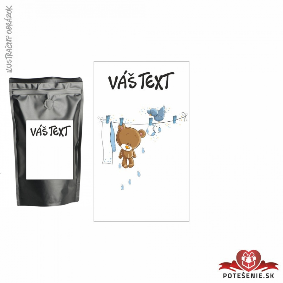 Zrnková káva s jedinečnou grafikou , poteší všetkých hostí na vašich krstinách