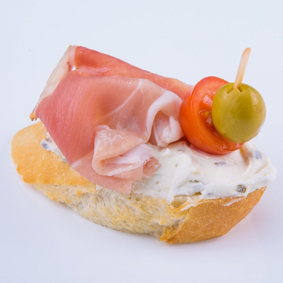 Zloženie: svetlá bagetka pažítková nátierka schwarladska šunka cherry paradajka oliva Balenie: 1 ks voľné balenie Hmotnosť: 40 g Alergény: 1,3 Min. obj. 15 ks Obj. min. 24 hodín dopredu Zoznam alergénov - klikni TU