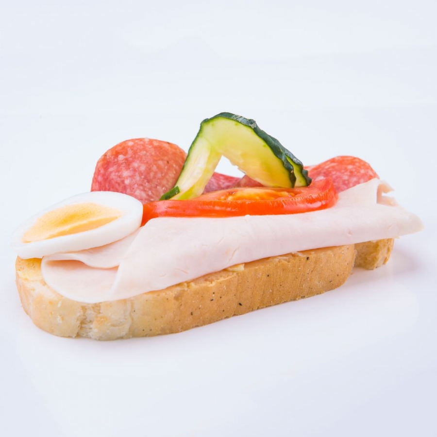 Zloženie: sendvič maslová pomazánka kuracia šunka suchá saláma vajíčko paradajka uhorka Balenie: 1 ks voľné balenie Hmotnosť: 80 g Alergény: 1,3 Zoznam alergénov - klikni TU