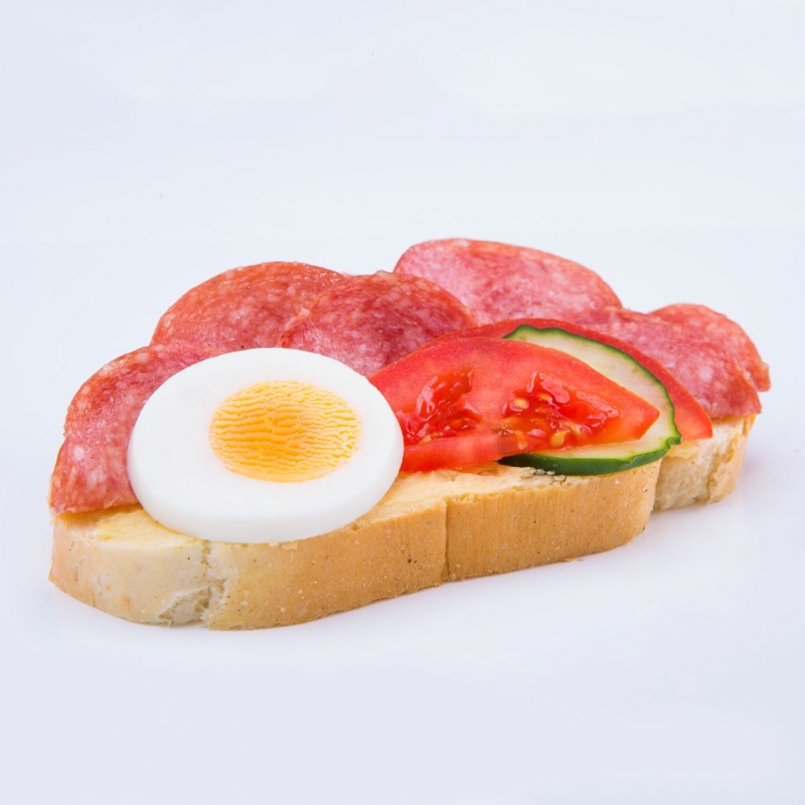 Zloženie: sendvič maslová pomazánka suchá saláma vajíčko paradajka uhorka Balenie: 1 ks voľné balenie Hmotnosť: 80 g Alergény: 1,3 Zoznam alergénov - klikni TU