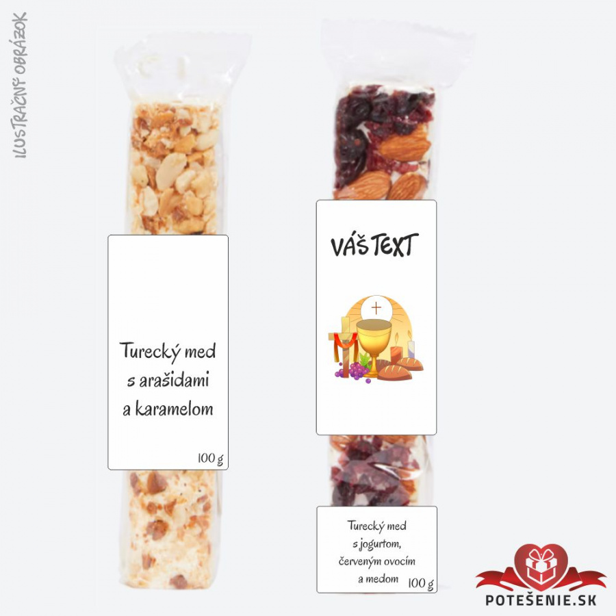Prekvapte svojich hostí na birmovke či Prvom svätom prijímaní sladkým a jedinečným darčekom! Turecký med a mäkký nugát sú lahodné pochúťky, ktoré potešia každého. V kombinácii s pečeným čajom vytvoríte originálny a cenovo dostupný darček.