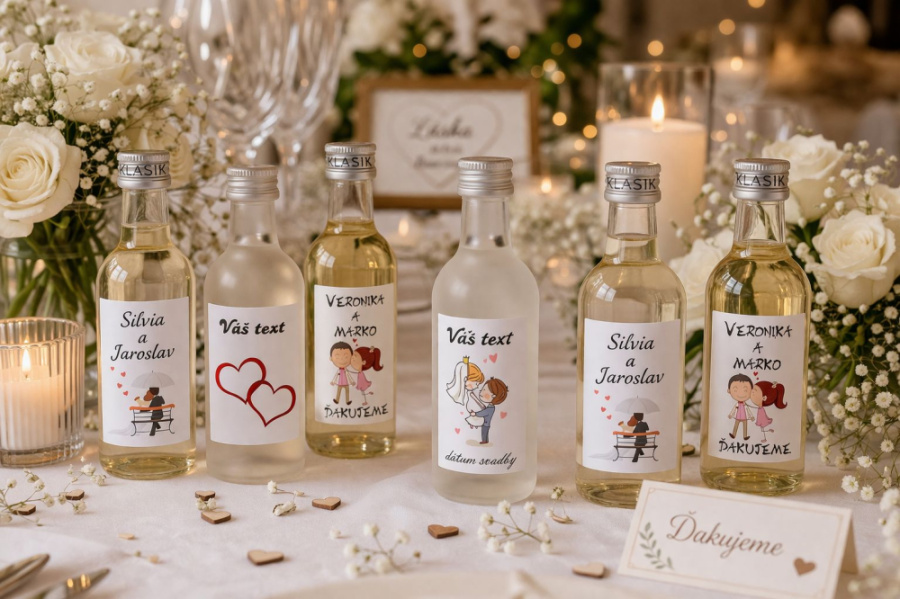 Svadobné mini fľaštičky pre hostí