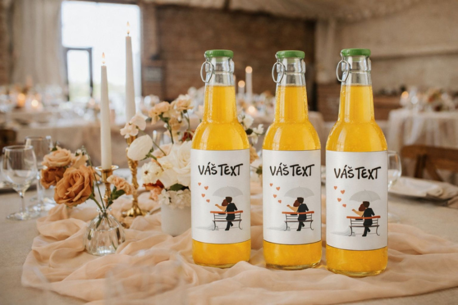Svadobný ovocný nápoj pre hostí - Ovocný nealko nápoj vhodný na spríjemnenie posedenia hostí, prípadne ako darček k výslužke s netradičným prevedením na uhasenie smädu.