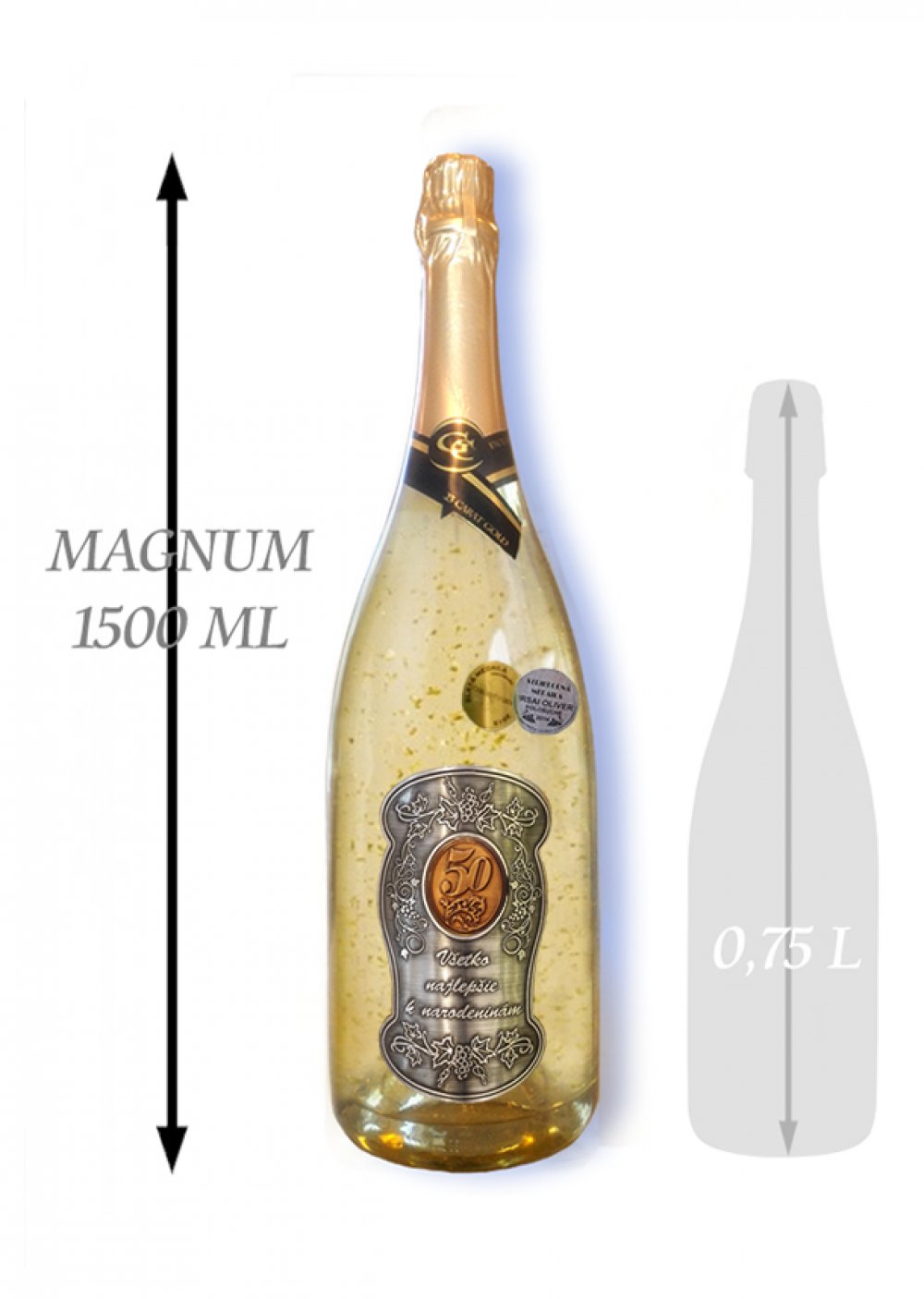 50 rokov Zlaté šumivé 1,5 L Narodeniny kovová etiketa