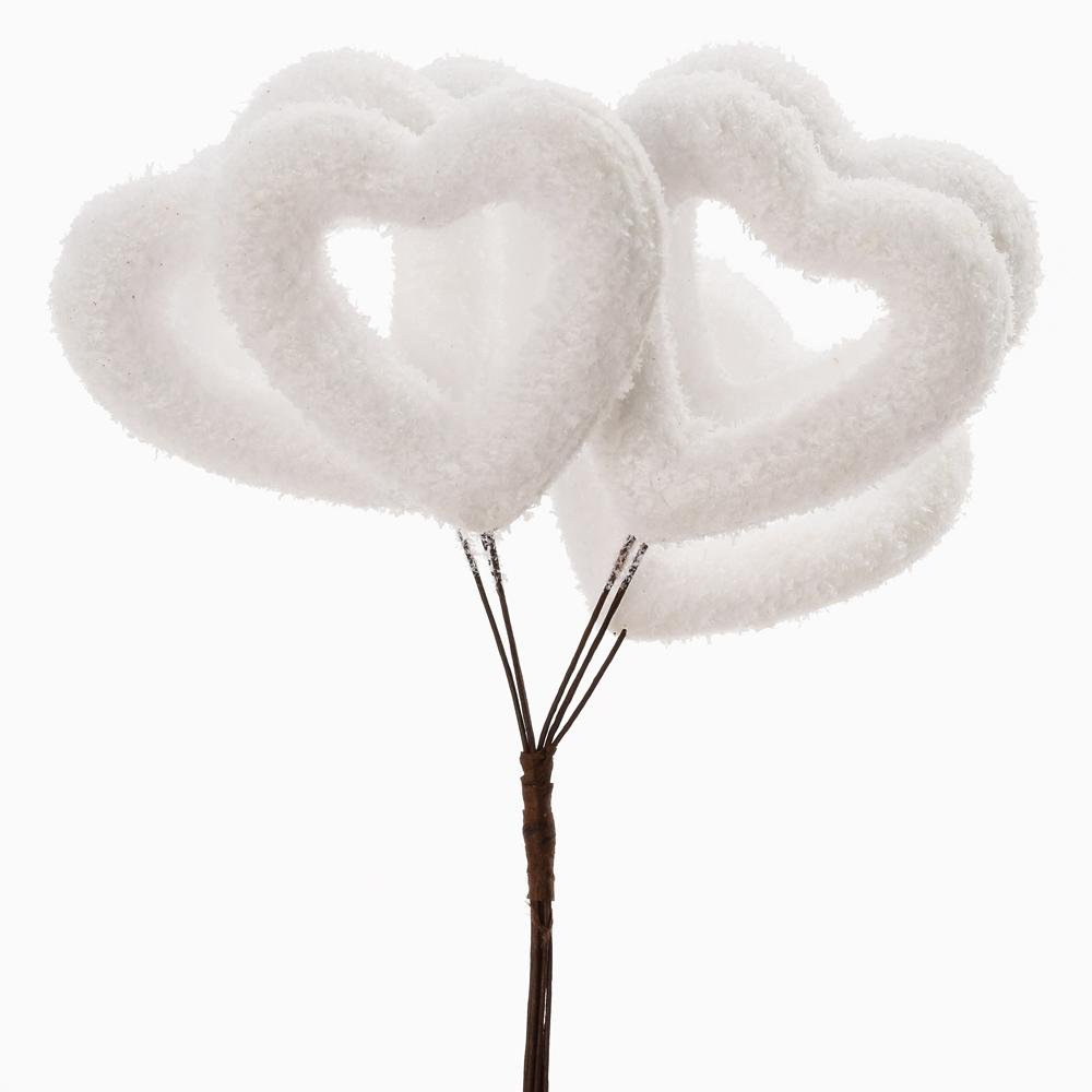 Dekorácia zápich biele srdiečka zamrz. s/6 15cm. Rozmer: