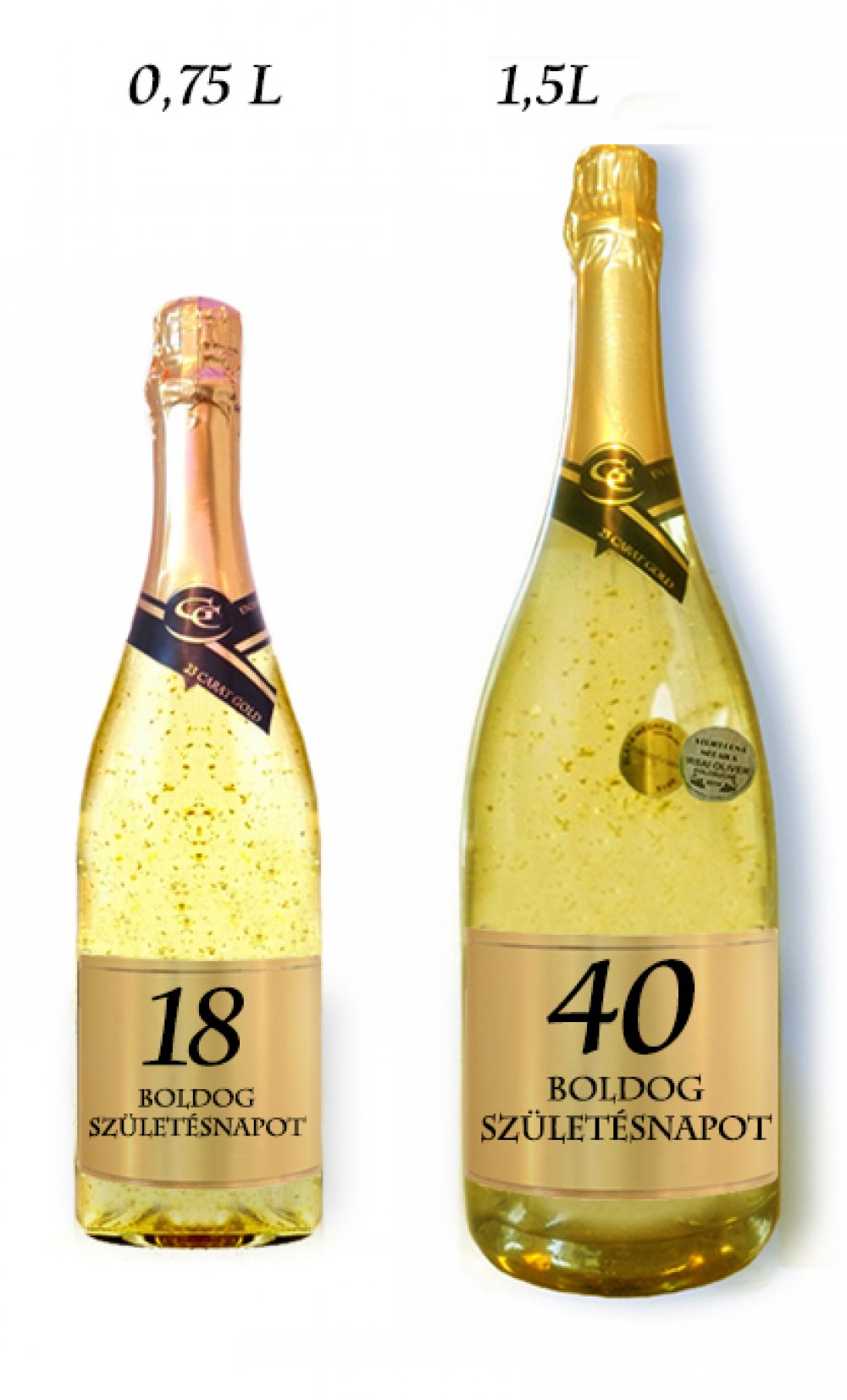 Gold Cuvee Fehér habzóbor 23 karátos aranypehellyel és kívánsággal Boldog születésnapot (életkorral 0-99 év között).