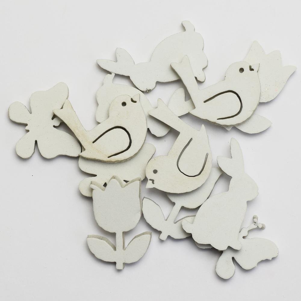 Dekorácia motýľ/vták/zajac/kvet s/12 3/3/4/3,5cm bie