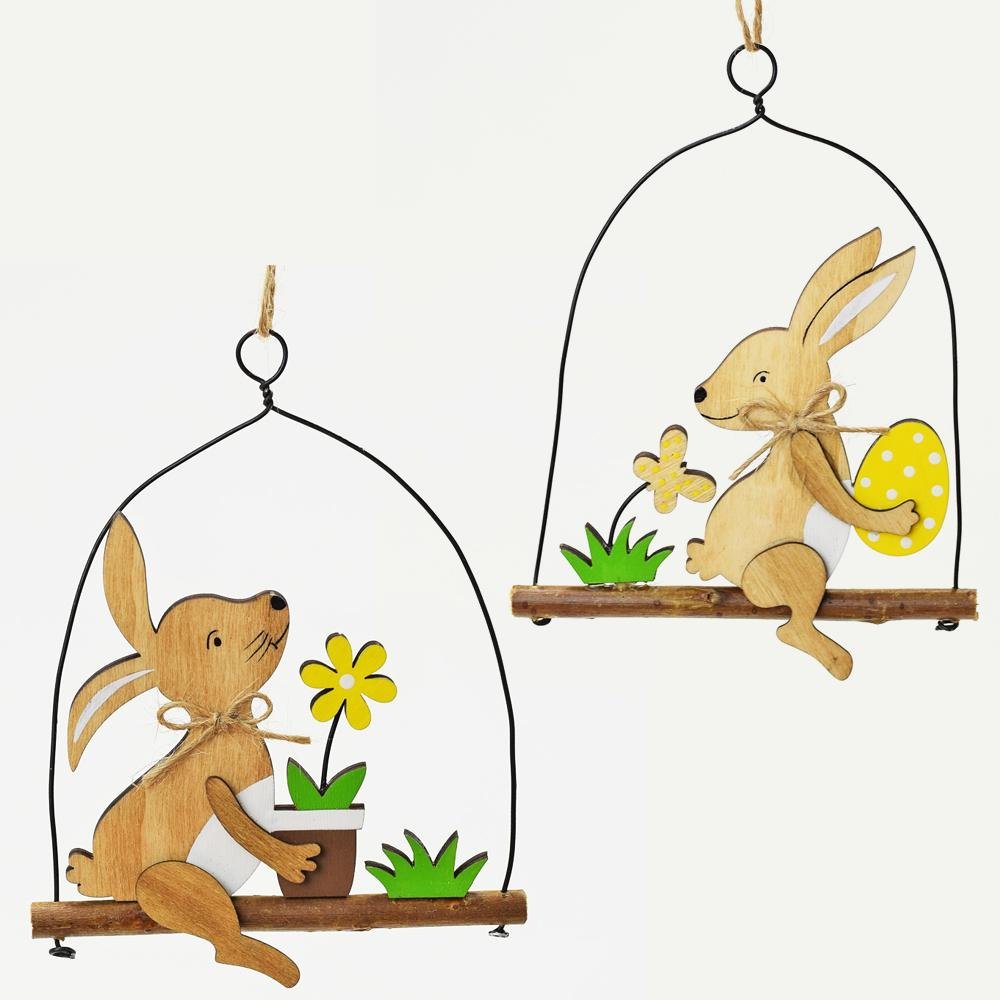 Dekorácia Zajac drevo na hojdačke mix 10x14cm